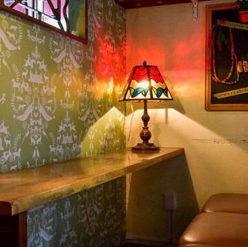 4名様までご利用可能な半個室です。落ち着いた空間とこだわりのインテリアに囲まれ、賑やかな中にも安らぎを感じられます。ご友人とのお食事や、少人数のパーティーにも最適です◎※撮影中のため系列店の一例です